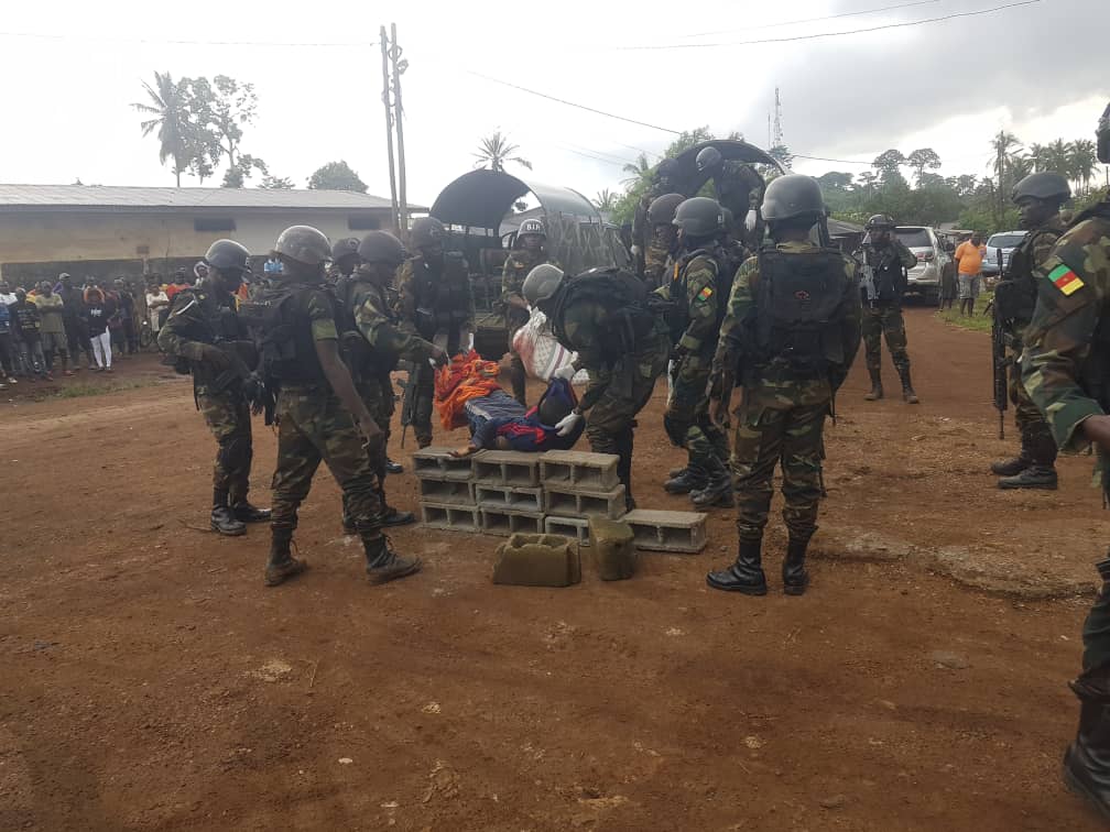 The mortal remains of two separatist fighters have been put on display in the city of Kumba, Meme division, South west region of Cameroon after they were killed by elements of the Rapid Intervention Battalion (BIR) this June 8th 2022.