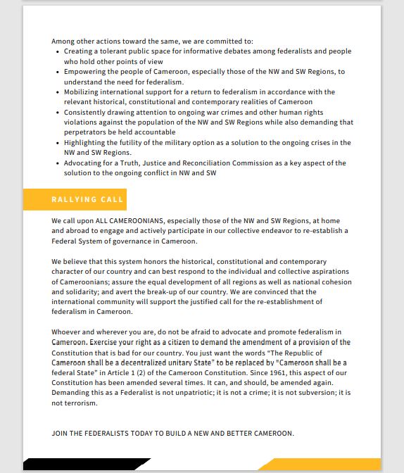 Groups and Activists, with a Federalist conviction to end the Anglophone armed conflict, have created a platform called, Coalition of Cameroon Federalist Groups & Activists. The official launch took place online with a litany of frontline Federalists taking part.