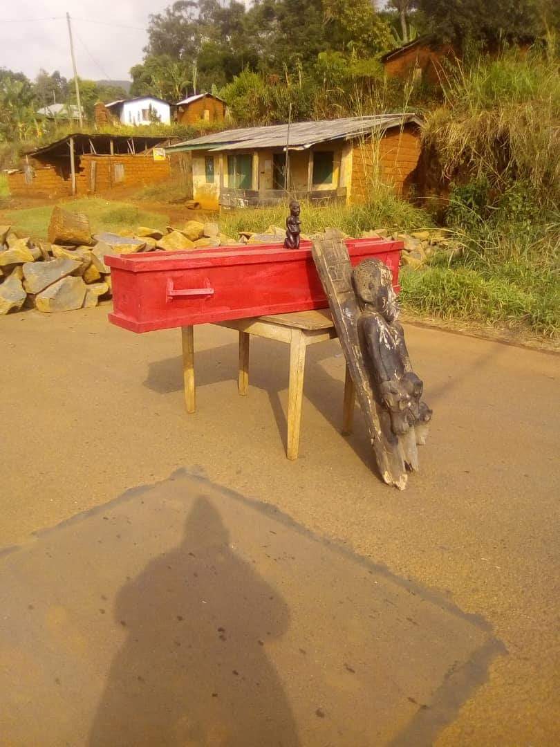 In some localities in the North West region, like Babanki, a coffin was on Wednesday February 6, 2019 displayed on the road, blocking circulation, while in other areas, artifacts were used. A coffin represents death; death therefore to anyone who dares to touch or cross over. This measure was mainly used to scare away soldiers who have been fighting Separatists for over one year. It is believed that anyone who crosses over or touches the traditional objects will either die, inflicted with incurable diseases or go mad.