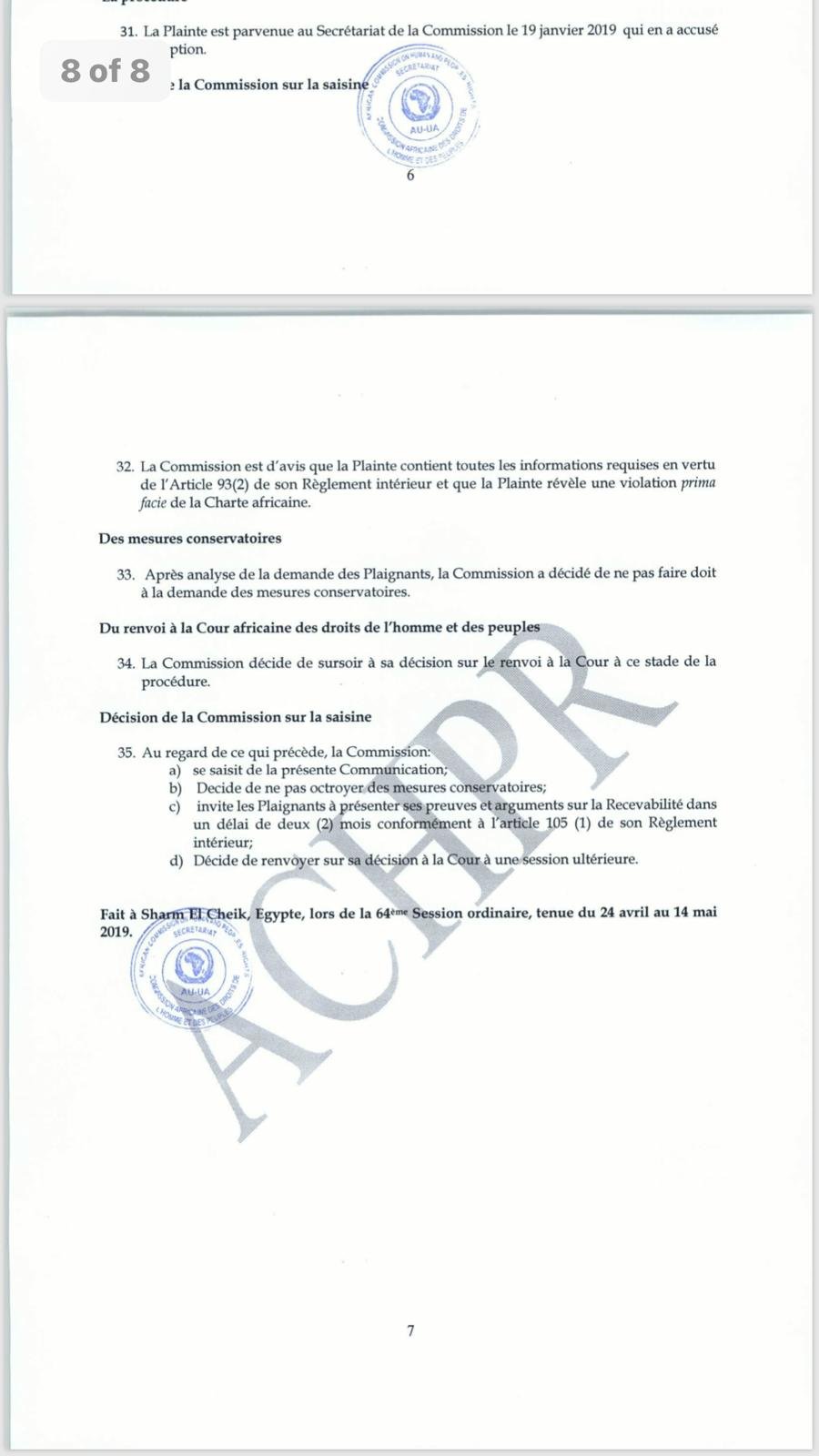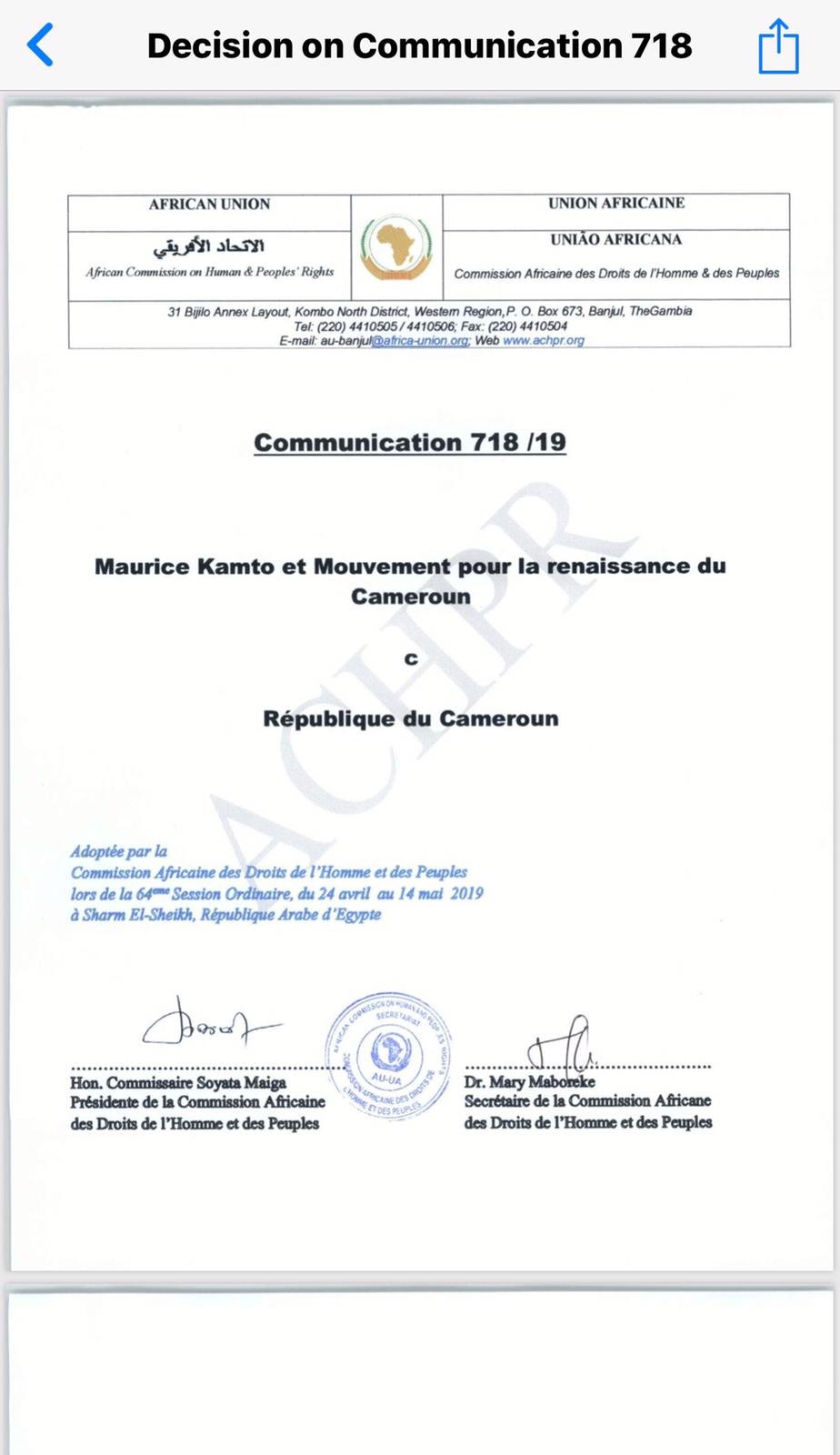 Sitting in her General Assembly on April 24 to May 15, 2019, the African Union Commission on Human and People’s Rights said the petition of the initiator of electoral holdup was valid but insisted that she will now sit in another meeting to examine the files. This will be after Professor Maurice Kamto and his party must have brought evidences.