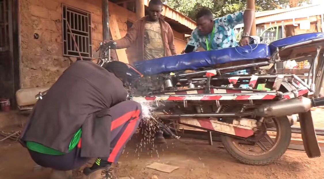 Emmanuel Wembe has left many in Bafoussam astonished by his ability to transform a two-seat motorbike to a ten-place machine.