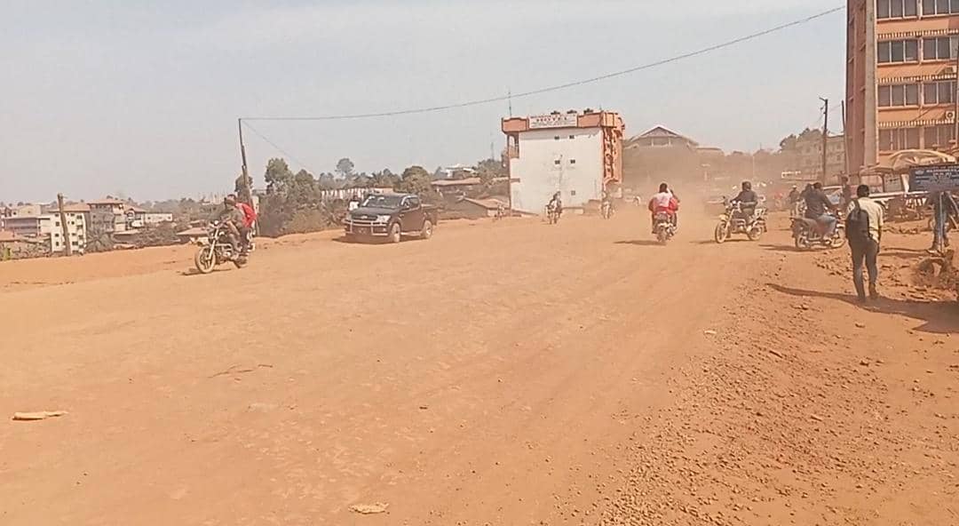 As early as 6:30am downtown Bamenda, the dust has already filled the air. Taxi drivers, bikers and passengers who drive across the Ngeng junction-Meta quarter stretch, passing through finance in Bamenda, North West region of Cameroon are all covered with face masks but their eyebrows and hair are coloured with the orange and brown mixture. Amidst the dust both in the air and on the ground, are perishables, cars, clothes just to name but these.