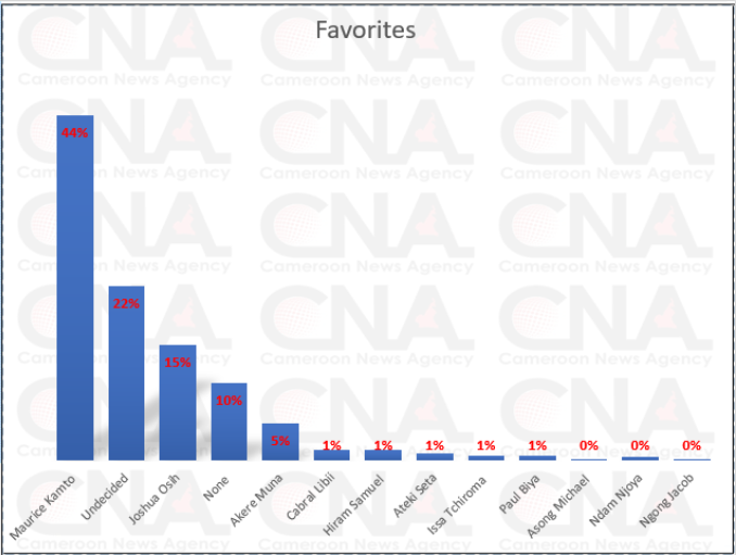 The data overall reveals a clear fatigue with the current government, as the majority of respondents do not want Biya to run for office again. Also, the data reveals that even though Kamto has been eliminated from the race through various state machinations, the majority of respondents still prefer him overall as the favorite candidate. Joshua Osih’s position in third place after a good number of respondents expressed undecidedness over who could be the second-best candidate after Kamto reveals that Osih may have a hard time at the polls with voters.
