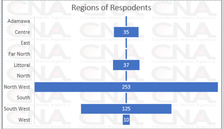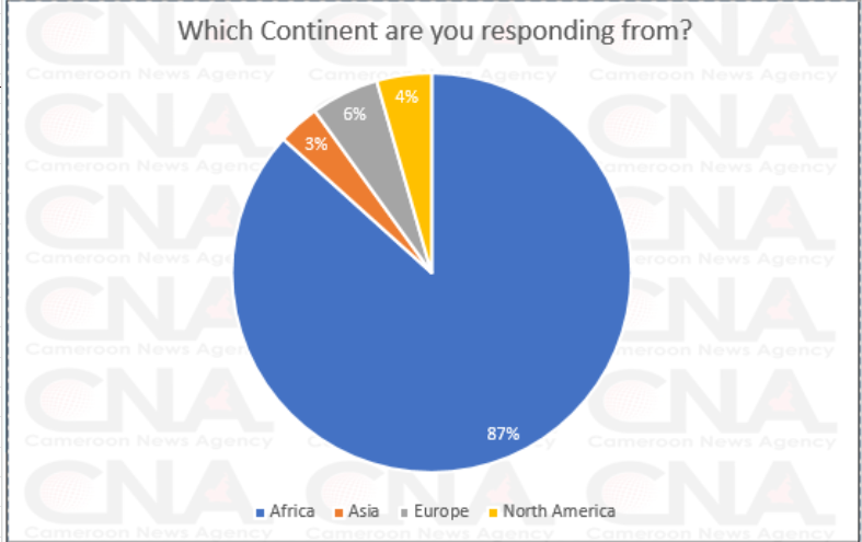 While the majority of respondents were based in Cameroon (398 respondents), the US came second with 20 respondents from that part of the world. The rest of the figures were broken down as follows: