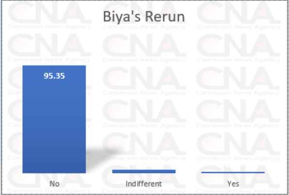 Out of a total of 473 respondents on the question about Biya seeking an additional term, 451 were against Biya seeking an eighth term. That is 95.35 percent against the 92-year-old running again.