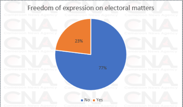 Regarding freedom of expression around electoral matters, 364 (77%) believed that there is no freedom of expression in the country around electoral issues. Another 109 (23%) believed that there was freedom of expression on the topic.