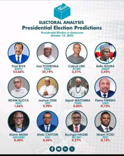 Est : Paul Biya 73,88% | Issa Tchiroma 19,82%