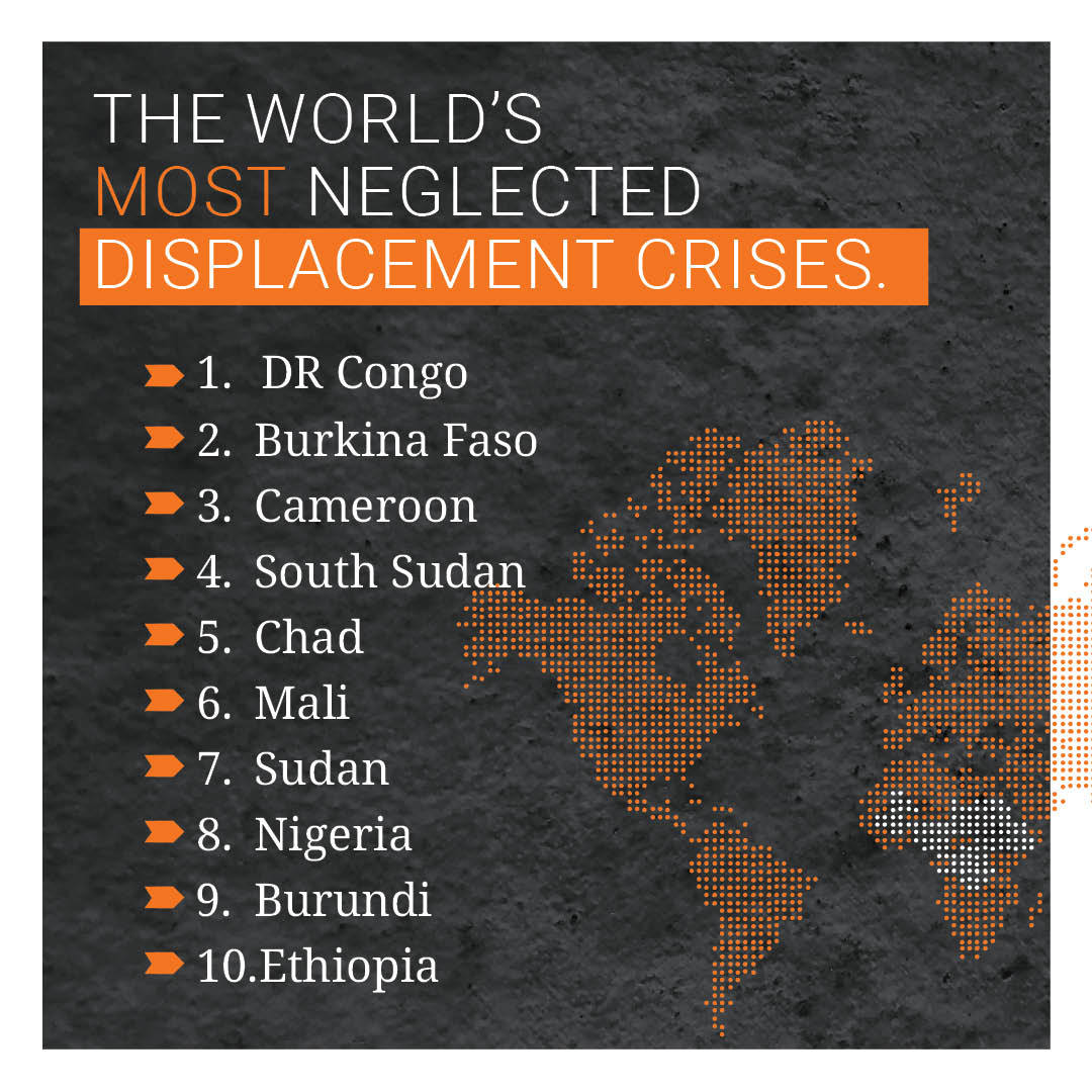 The Norwegian Refugee Council, NRC has released a list of ten countries that are ranked according to the level of negligence. All the ten most neglected conflicts are in Africa.