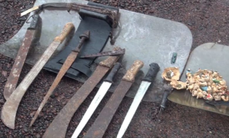 The suspected criminals were presented to the public on Tuesday, August 30, alongside deadly objects they used to scare the population. Hard drugs were also in their possession.