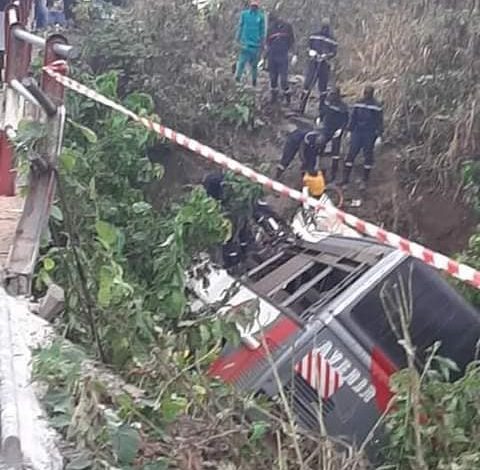 The first rescue team from firefighters arrived the accident site between Makenene and Ndiki. At least more than two dozens are reported dead, several others injured. The buses belonging to Avenir du Noun Travel Agency, left the West region for the Centre region overnight. On their way around Nomale, a heavy-duty truck made failed attempt to overtake hitting an incoming 70 seater. As a local rescue team arrived to secure the place, another 70 seater bus from the same Agency was forced to divert rather than hitting the people in frotn. This second bus then flipped over the bridge, causing many to die.