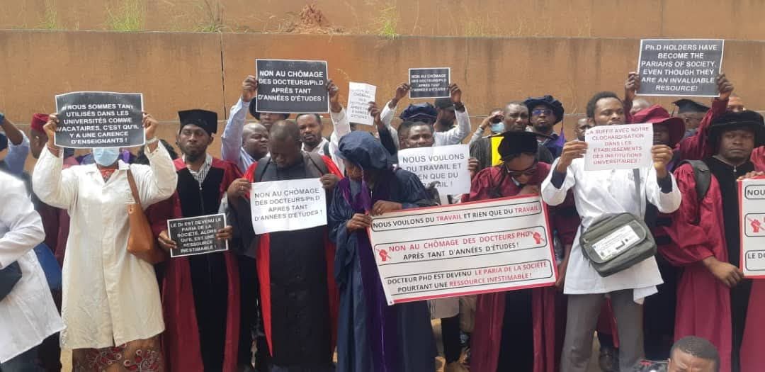Recent pictures and images showing PhD graduates in Yaounde, protesting because they have not been hired by government have left Cameroonians in disbelief. Many are astounded by the fact that academic scholars of the highest rung in the academic ladder – are unable to create or find employment for themselves! A PhD is the highest level in academic achievement, it shows that one has undertaken independent, often, trailblazing research in a field of interest to them. Unlike other levels of study where you simply attend class, write exams and pass, a PhD is pretty much the scholar’s own thing. He or she chooses their field, topic and what research method they will undertake in completing that research.