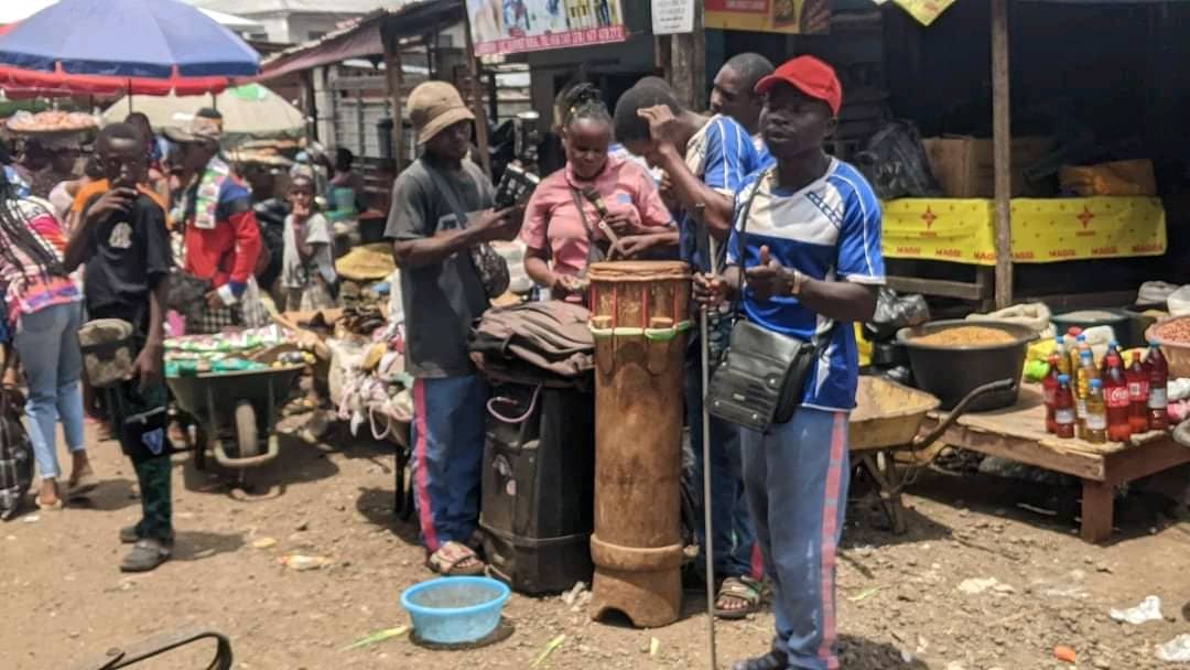 It was an ordinary day, around the section where onions, tomatoes, dry fish, and other foodstuffs are sold. Sounds from a group of musicians who come by in a while made it unique. Traders like buyers noded to the musical display of six who had stormed this side of the busy Great Soppo Market.