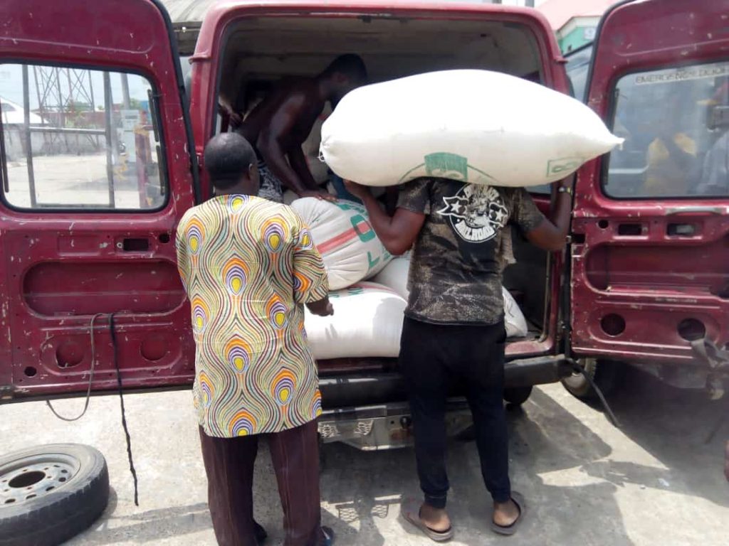 Bags of Rice and other commodities arrive Akwa Ibom State In Nigeria for Cameroonian refugees.