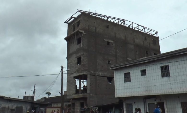 A grandmother living in Nkoulouloun, Douala II subdivision has raised alarm over what she qualified as “a building of death” over her roof. She was referring to a five – floor storey building erected on a narrow piece of land. Following a series of building collapses in the city of Douala, with a deadly one at mobile Guinness still fresh in the minds of Cameroonians, the woman in her 70s fears death is already looming around her.