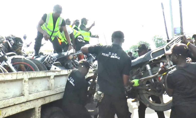 Over 20 motorcycles were confiscated, dozens of trucks, wheelbarrows with with goods were also carried away by the elements of the Douala V municipal police.