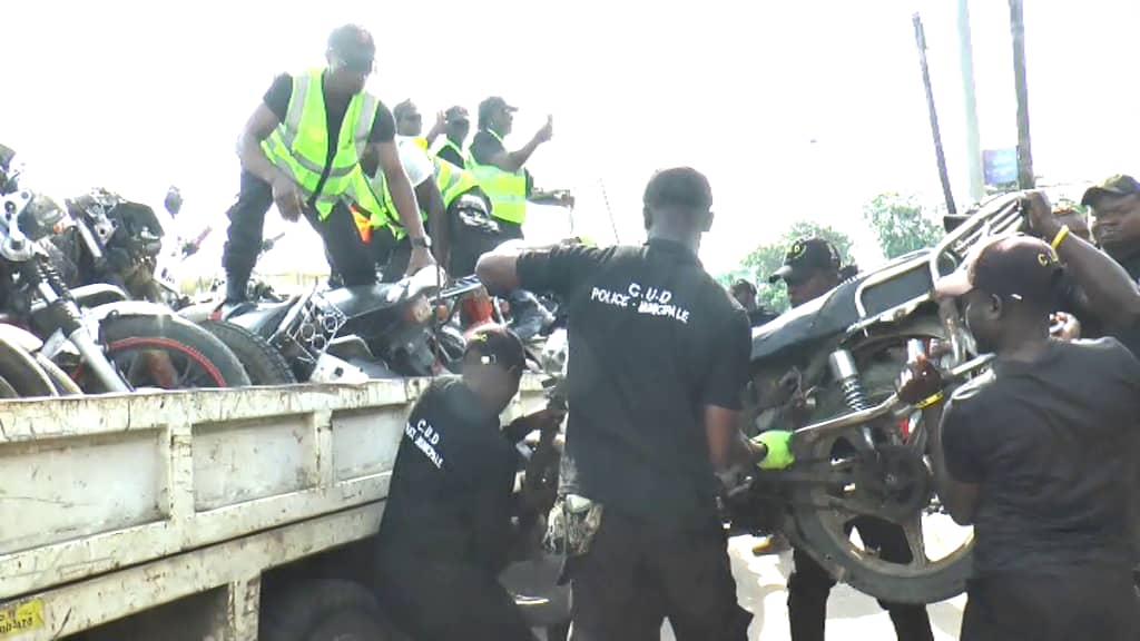Over 20 motorcycles were confiscated, dozens of trucks, wheelbarrows with with goods were also carried away by the elements of the Douala V municipal police.