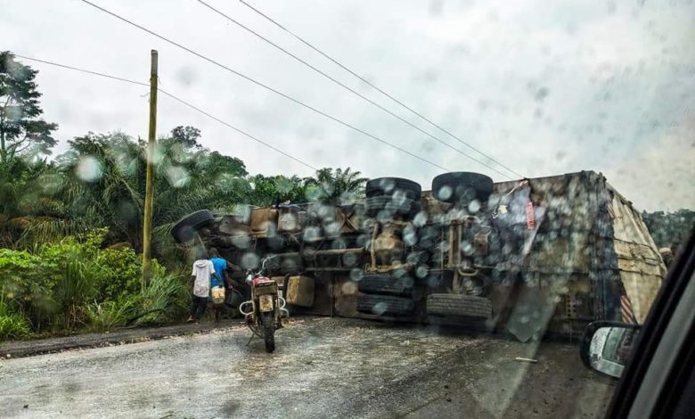 Mbanga, Cameroon ( CNA)– A bizarre accident brought traffic to a standstill in Mbanga this morning. A truck carrying crates of eggs overturned, spilling its cargo across the road and causing a massive traffic jam.