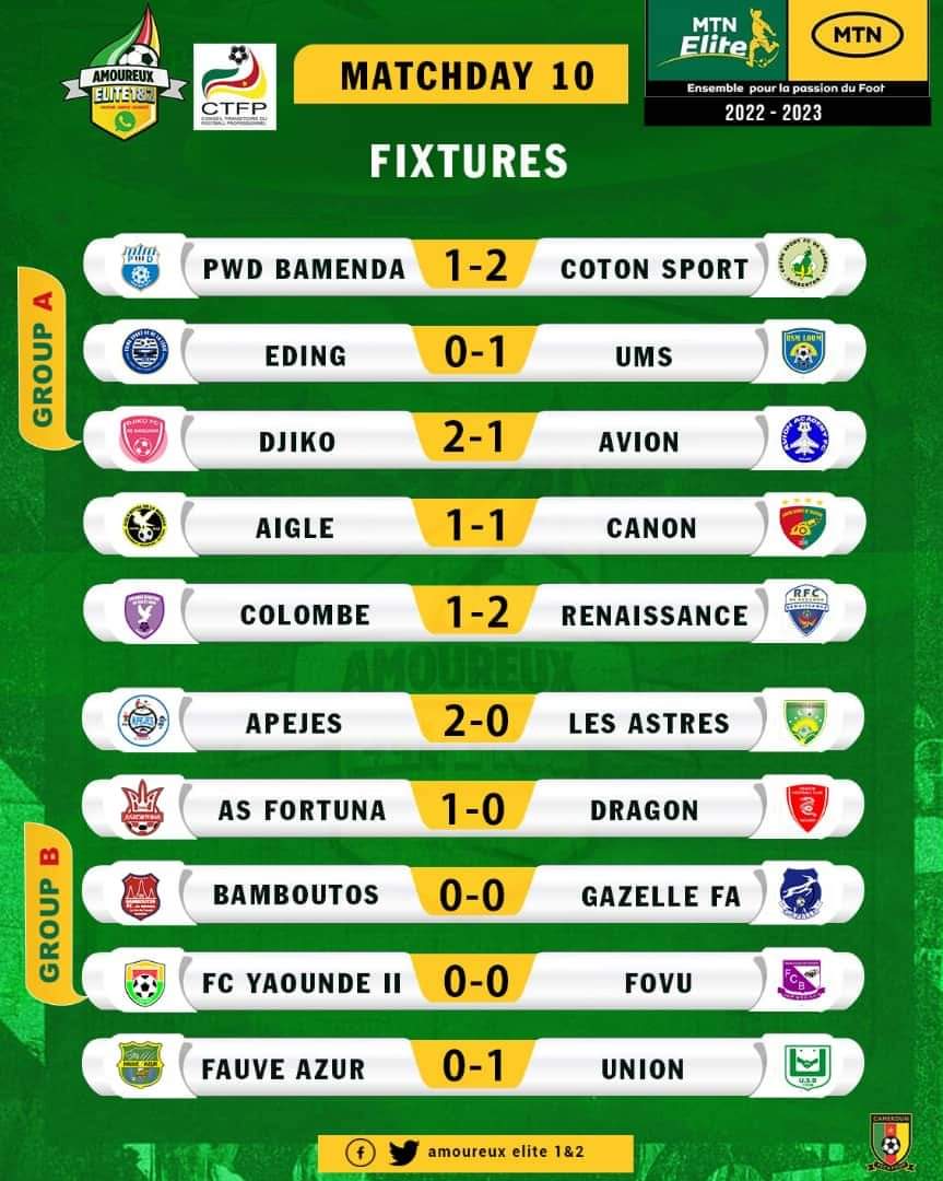 Day 10 matches of the MTN Elite One championship were played on Wednesday, December 28 in stadia across the country. In the top match of the day, Group B leader Bamboutos FC of Mbouda played another deceitful goalless game with Gazelle. The game that was played at the Mbouda Arena Stadium was the team’s fourth consecutive draw. This series of draws comes after the team enjoyed one of the most perfect starts in Cameroon’s Elite One championship history with 5 consecutive victories. The team however remains unbeaten this season in 10 games in a row.