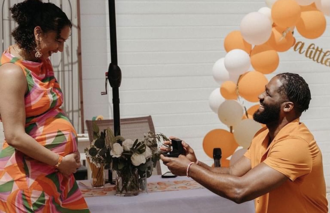 The centre-back who is expecting a baby boy as she announced in February, shared photos of the proposal which took place during her baby shower a week ago.