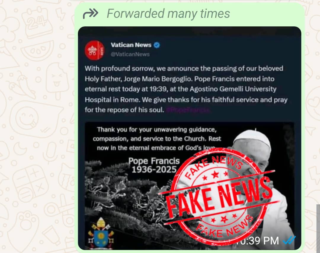 CNA first came across the rumors on WhatsApp, with an image claiming to be from the Vatican News which reads