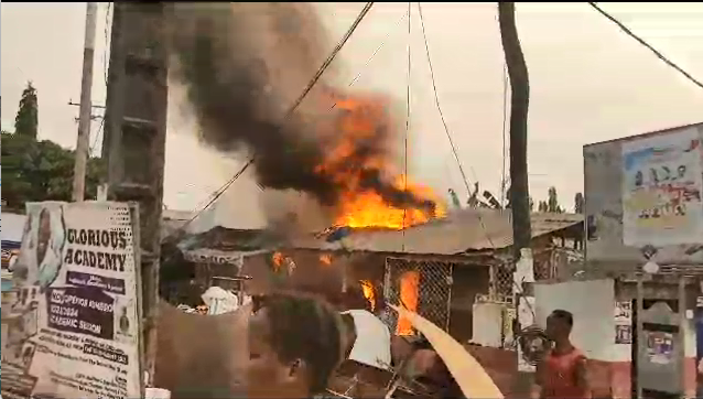 A popular Pepper seller who is known around as “Mbut man” explained that he was told about the incident and before he could reach his shop, the fire was already thick inside.