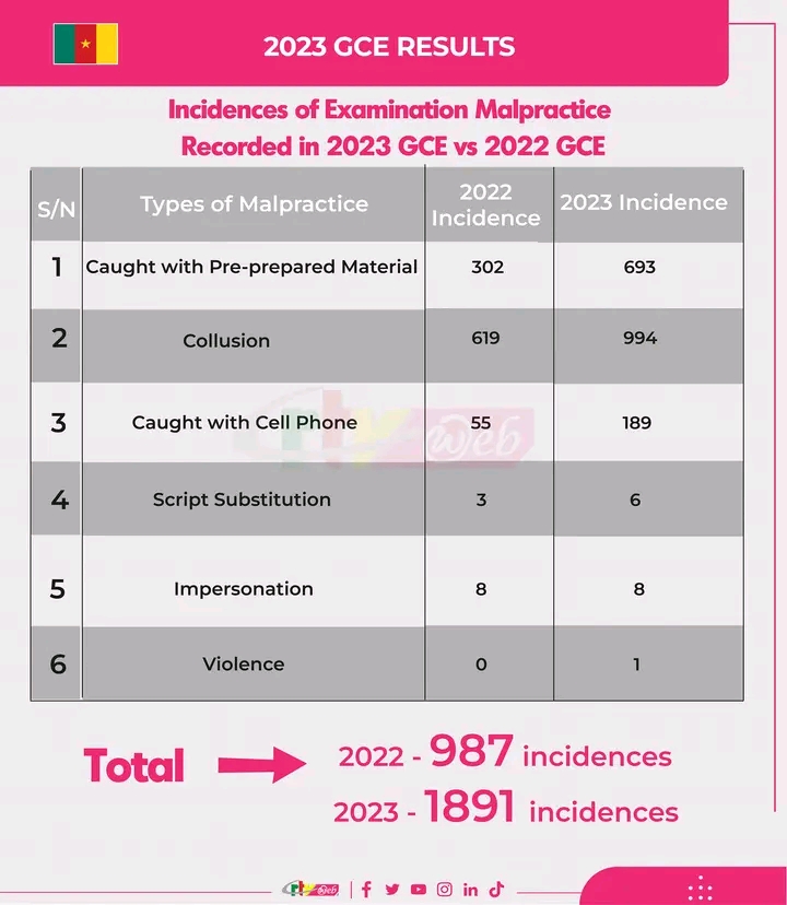 State media, CRTV, has reported that the candidates were sanctioned by the GCE board for 6 malpractices.