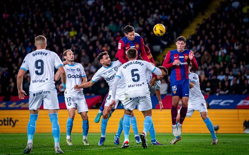 Artem Dovbyk and Miguel Gutierrez scored in the first half for Girona. Robert Lewandowski equalized the first goal, netting for the first time in nearly a month.