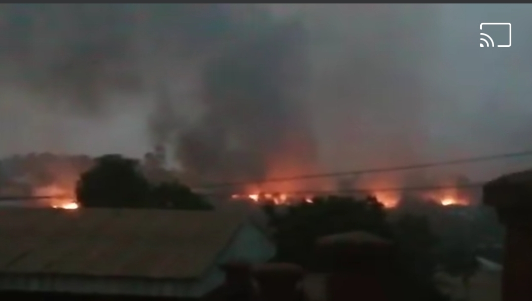 “The explosive was detonated around Kernel Mill and since then, the Government forces have been burning houses,” a civilian in pains said.