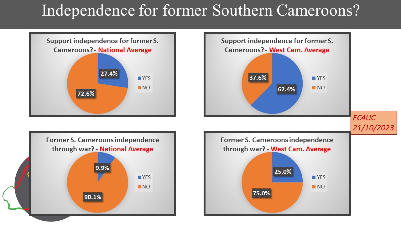 But this support for independence according to the polls should not be pursued via war as only 25% of respondents support the ongoing war of the former Southern Cameroons.