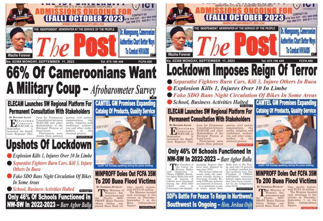 One of Cameroon’s leading English newspapers The Post, has faced criticism over a controversial headline considered as one which could stir coup sentiments among citizens.