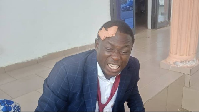 The evicted members for their part, said the ousting was a move to stifle their voices and favour the incumbent. All these added heat at the election venue to the issue of eligible voters. In a separate video pictured at the hospital ward, the victim Ikome Charles is seen with a plastered face. He explained that, not only was he hit but his phone was destroyed beyond repair as he showed what remained of the device.