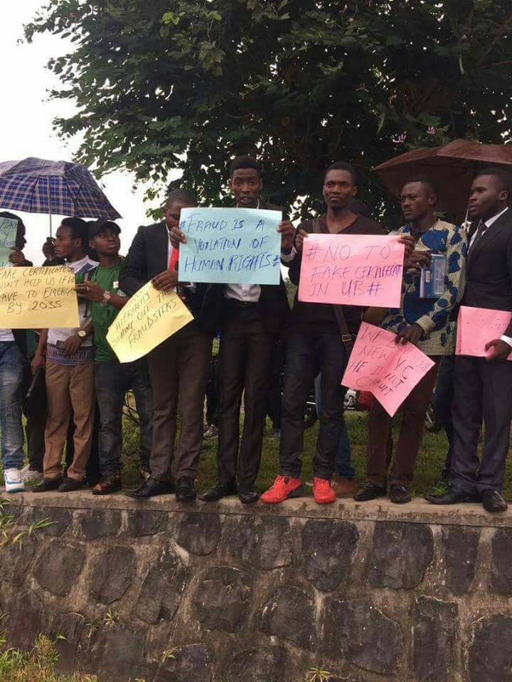 Buea,Cameroon-July 10,2017-12:50 pm Local Time(Cameroon News Agency) Some students of the University of Buea have on Monday July 10, besieged the premises of the Amphi theatre 750 brandishing placards denouncing the upsurge of fake certificates on campus.