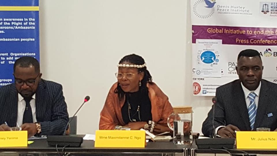 Geneva, Switzerland- Thursday February 7, 2019-1 PM Local Time (Cameroon News Agency) The Executive Director of the Network of Human Rights Defenders in Central Africa, REDHAC, Maximilienne NGO MBE, has said the form of the state must be on the agenda before any dialogue. Speaking on the sidelines of the first international press conference organized on Thursday February 7, 2019 in Geneva, Switzerland to end the armed conflict in Southern Cameroons and call for a UN fact finding mission, she said, Ambazonia leaders were kidnapped in Nigeria by the government and illegally extradited to Cameroon, a powerful indicator that the Biya regime cares less about laws and human rights.
