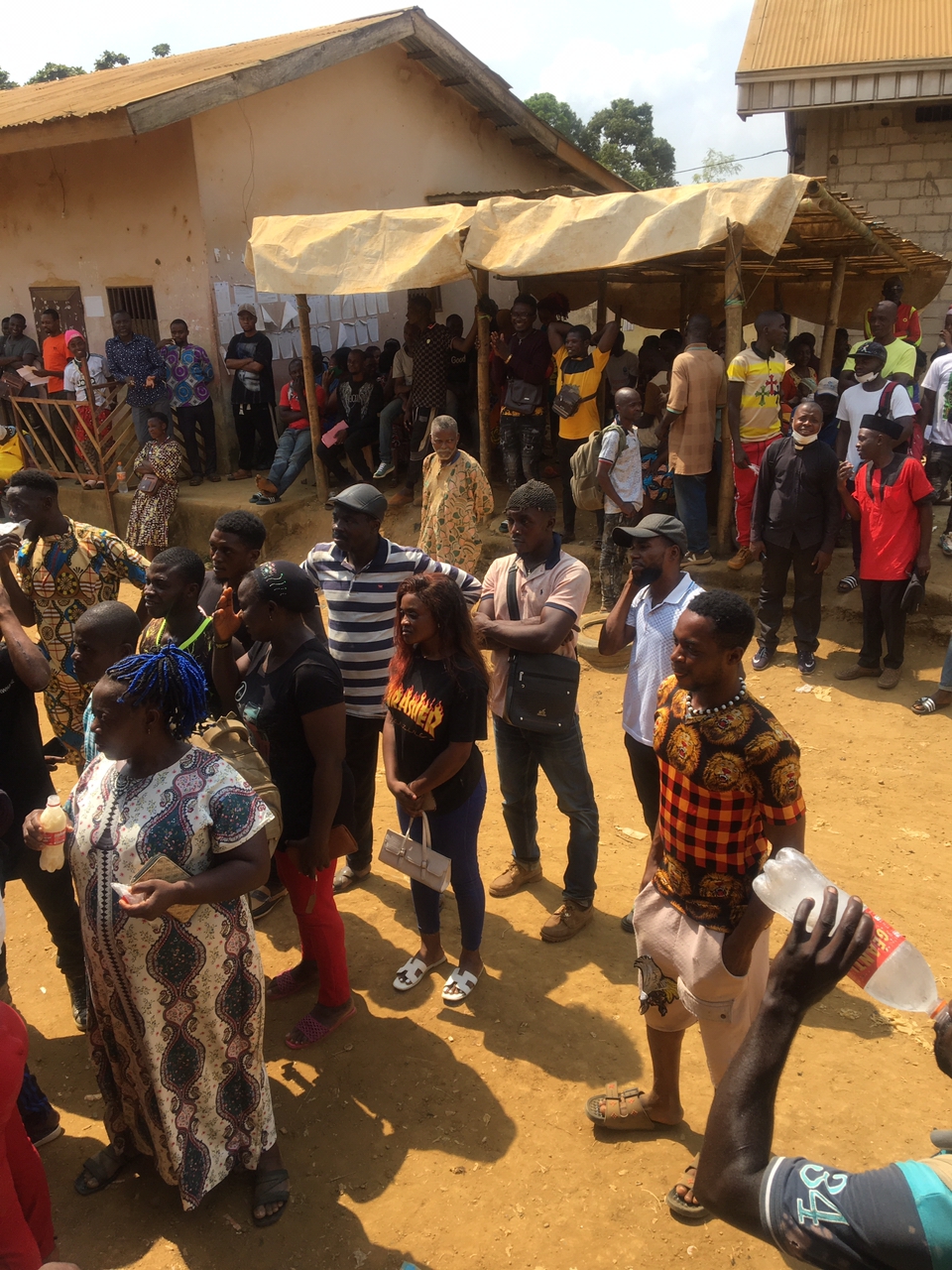 At the Police station, Mile 1 Kumba, long queues can be seen with each person having documents in hand waiting for their names to be called up in order to obtain their ID cards, and others to extend the expired ones.