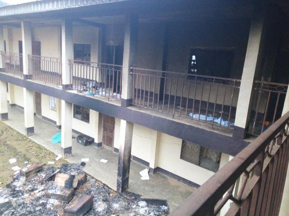 Early Monday, locals discovered burnt trunks, books and some dormitories in the institution. The gigantic building itself has some parts totally black due to the smoke that emanated from the dormitories.
