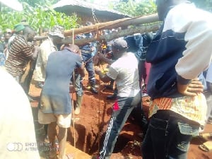 Elements of the firefighting brigade have retrieve the lifeless body of Djeukem Jeanne from a pit. This happened on June 2nd in the village of Batcham, Bamboutos Division of the West region of Cameroon.