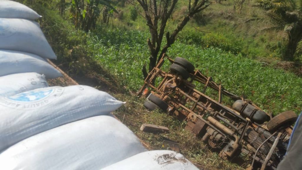 Some hours later, at the same area, another truck loaded with empty brewery truck, UCB  crates and four persons on board, including a 2 year old kid  from Bamenda in the Northwest region of the country found itself off road after trying to avoid collision with a stationed coaster.