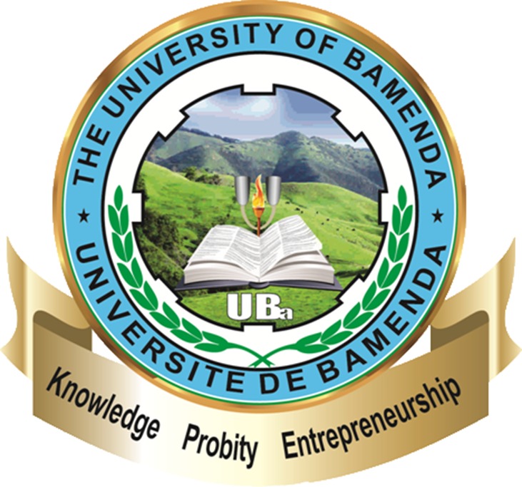 That of the University of Bamenda is similar. A circle with the words “University of Bamenda” ontop and the French translation below. There is a background of rolling green hills behind and an open book.