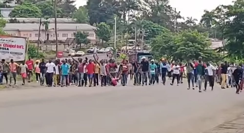 Angry youths paraded the corpse of the three-year-old girl, Ndialle Caroline. The irate population marched to Clerks Quarter where gunshots were fired to disperse the protesters. But they kept on until the Governor’s office.