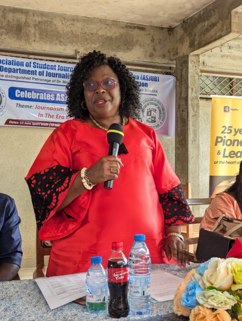 Dr Mrs Doh Beltha, the “Mother of JMC” and patron of the 30th anniversary celebration, expressed her pride in the department’s growth and legacy. “When I talk about JMC, I think about the early days… We started with 30 students, and now I see a lot of students, but I am impressed that the family legacy is still there.” She emphasised the importance of the students’ practical experience, saying, “The legacy that we want to leave behind is for the students to have a platform where they can exercise their abilities, learn, and appreciate what we have.” During the event, she made a generous pledge of over 500,000 FCFA towards the revamp of Chariot Radio, contributing significantly to the total amount raised.