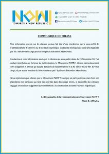 A statement signed by the Communication Officer of NOW! Steve Amara, rejects social media reports that a request for public meeting by Sam Severin Ango(part of the Now Movement team) was banned by Ta Bertrand, the Divisional Officer of Ebolowa 2.