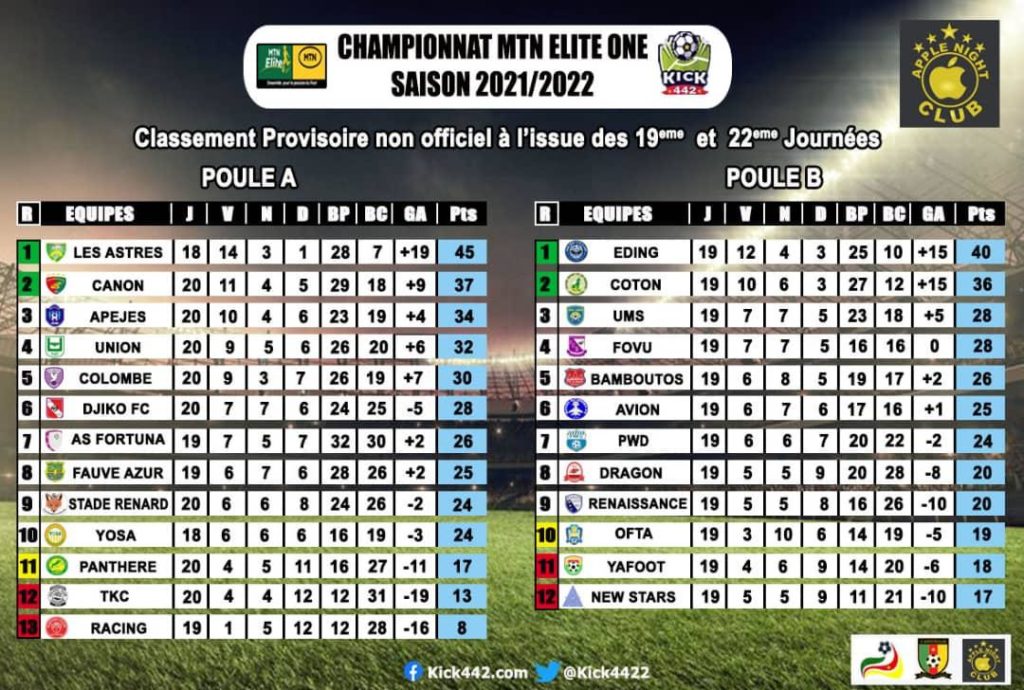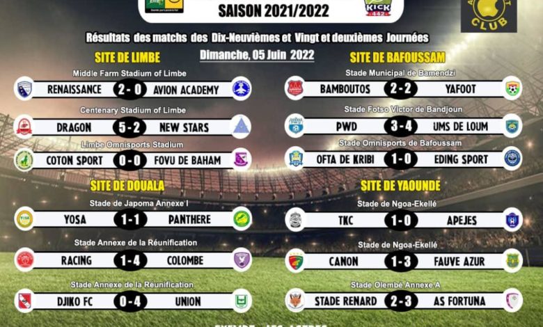 PWD of Bamenda still has 24 points and is ranked 7th in group B while Bamboutos FC of Mbouda is ranked 5th with 26 points. YOSA on their Part are 10th in group A.