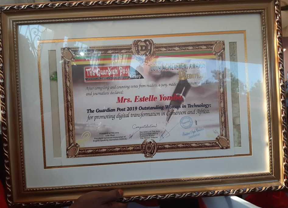 The CEO of Seven Academy,https://sevenadvancedacademy.com/ a first-class IT training institution located in Bali, Douala, Estelle Yomba has received the Guardian Post award of the outstanding woman in Technology of the year 2019 for her role in promoting Digital Transformation in Cameroon and Africa through Seven Academy, Seven GPS and Sunshine Africa Education, on Friday, June 12, 2020, in Yaounde.