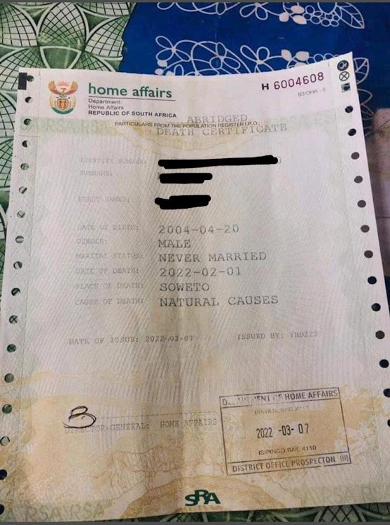 The un-named learner’s teacher was very concerned and took to social media where she posted a picture of the death certificate which stated that the schoolboy had “died of natural causes” on the 1st of February 2022.