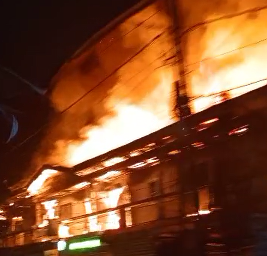 Flames burst out in Marshall Home, a popular building in the Cassava farm neighborhood. The Plaza hosts a credit union, provision shops, and other services.
