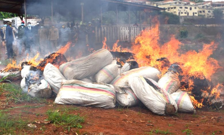 Destined for the capital city from Bui Division of the North West region of Cameroon, the MINAT boss praised the vigilance and bravery of the security forces in tracking the consignment of 1,614kg indian hemp.