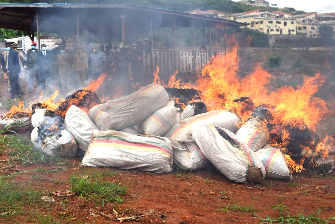 Sixty two bags of marijuana costing about 400 million lie in ashes after being set ablaze upon confiscation by forces of law and order.