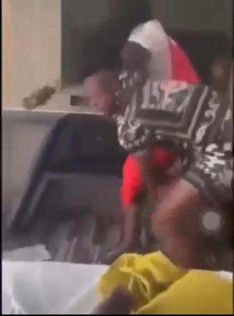 In the video, Eunice can be seen keeping Tenor in a choke hold and Tenor later throws her to the floor after several attempts to free his neck in vain.