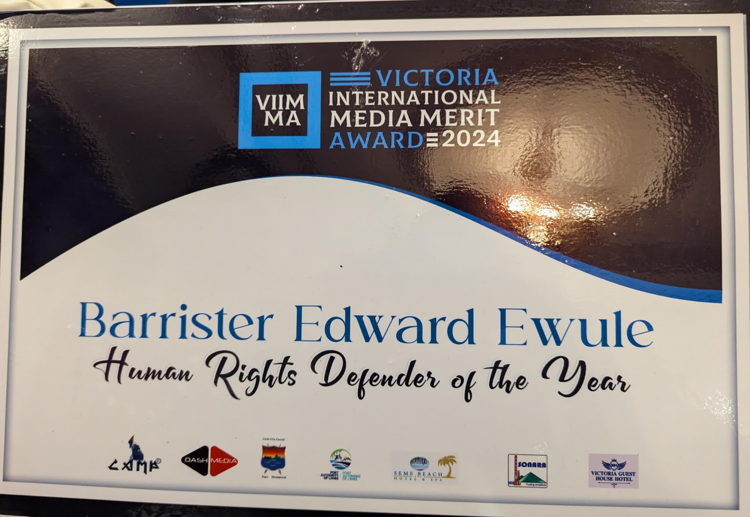 In a resounding recognition of his unwavering commitment to justice, Barrister Edward Lyonga Ewule has been named Human Rights Lawyer of the Year by the Victoria International Media Merits Award (VIMMA). The prestigious award was presented during a grand ceremony on Friday, August 16, at a hotel in Douala.
