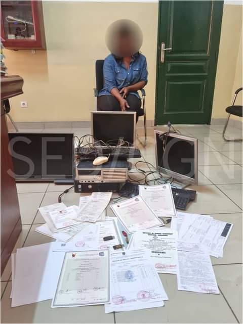 She is known in the neighborhood and environs as a specialist in the production of fake school certificates, birth certificates and other administrative documents which were found in a secretariat managed in her home. In her possession at the time of arrest were two computers, four USB flash drives containing falsified bank and court documents and a photocopying machine. All these items were confiscated by the gendarmes who say they are still investigating the case.
